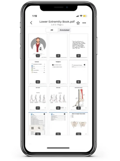 Digital download in PDF format, with 4 sections; includes: 1. Trunk, 2. Hip & Knee, 3. Lower Leg: Ankle & Foot, 4. References.
