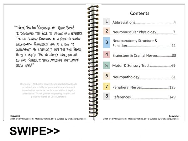 I developed this book to be utilize as a reference for my clinical rotations, as a guide to common neurological pathologies and as a way to supplement my studying.
